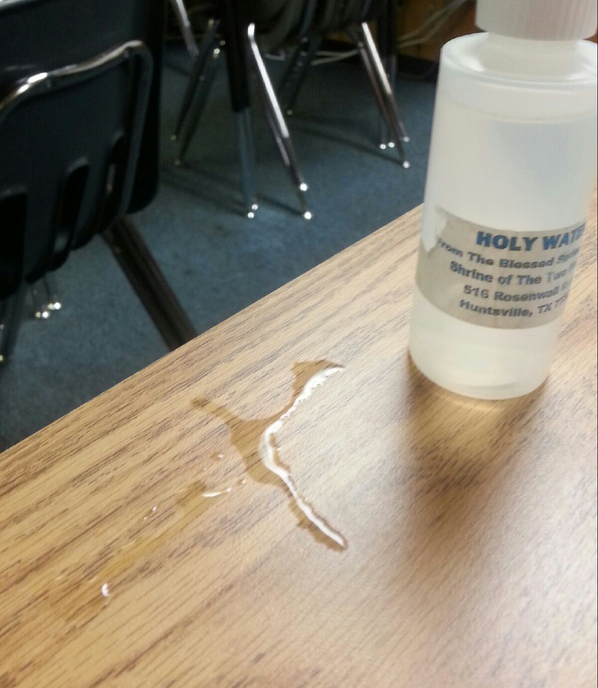 4. You have blessed student desks or other parts of your classroom with holy water before school.